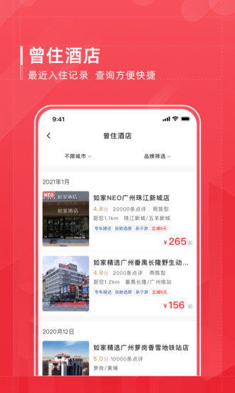 首旅如家聚合了如家酒店集团旗下的各类住宿品牌,关联了覆盖广泛的旅游景点资源。通过它便捷地预订酒店,并获取周边景点的门票优惠信息,省去了在不同平台之间切换的麻烦。成为旅行者出行前、出行中以及出行后的得力助手,实现住宿预订与旅游规划的无缝衔接。