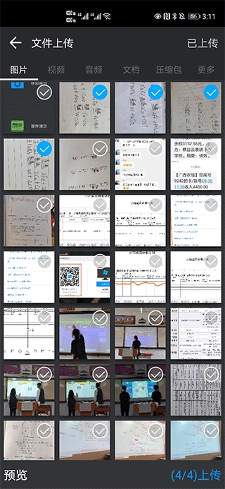 4、如果想展示学生的作业或者实验等图片,可以选择【文件上传】,然后再选择对应的文件,一次最多只能传4张图片;