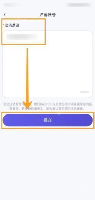 在注销账号页面中输入注销原因,然后点击【提交】即可。