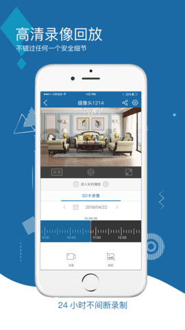 应用支持随时查看家中、商铺、办公室等场所的实时监控画面与云端录像,保障财产安全。