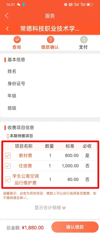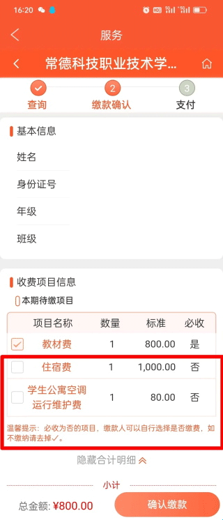 4、仔细检查并确认缴费明细后选择支付方式完成支付即可。