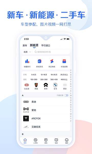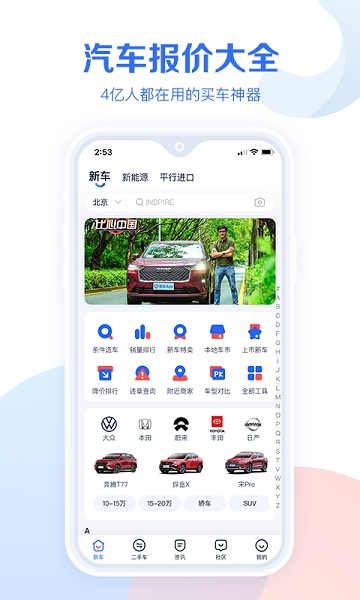 查找车型:更便捷的车型品牌列表,更丰富的筛选条件,帮您找到最中意的那款车;