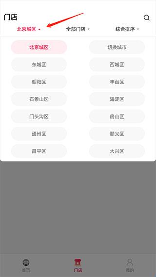 2、在门店这里可以选择好自己所在的城市。