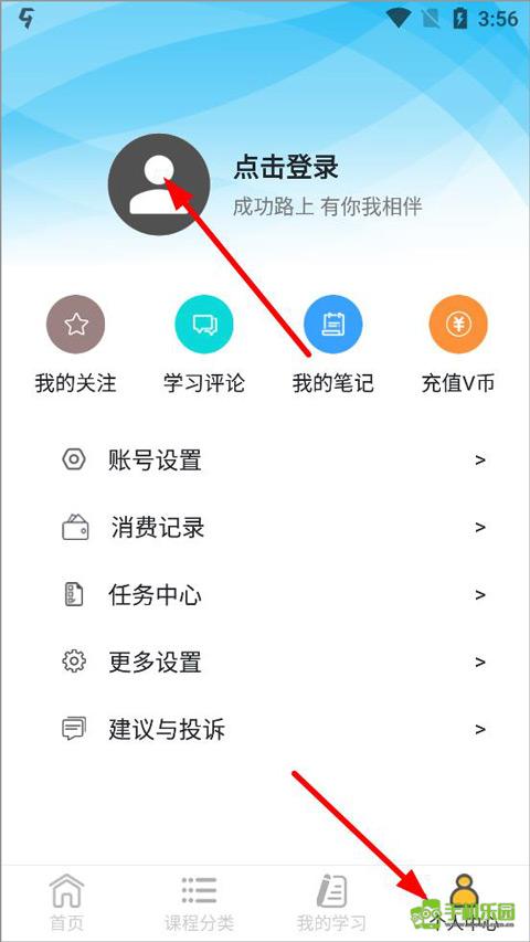 1、打开我要自学网app,进入个人中心页面,点击头像注册登录;