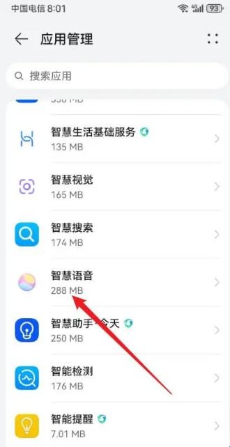 2、进入到应用管理页面,找到并点击“智慧语音”。
