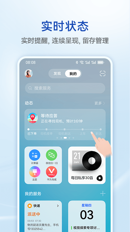 以服务卡的形式为旅行、日常生活和工作相关事宜提供基于场景的提醒和第三方增值服务。