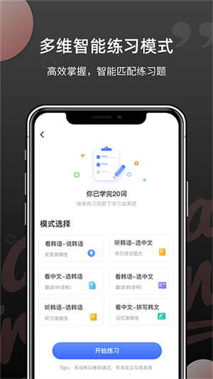 1、智能化学习系统:结合科学记忆方法,帮助用户高效掌握韩语单词。