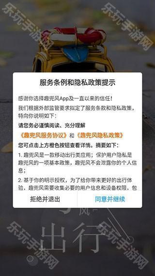 1、从乐玩下载趣兜风app安装,打开应用,同意软件安装协议