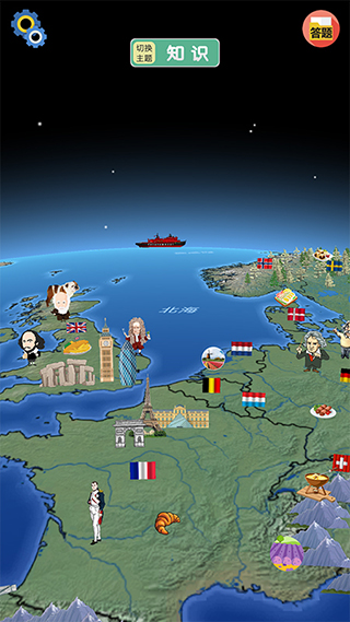 2. 点击地球上方切换主题,确认感兴趣的主题后,即可在答题功能中回答相关问题。