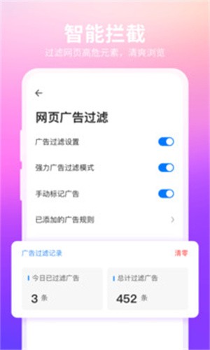2、内置的广告过滤系统有效屏蔽网页上的弹窗广告和横幅广告,为用户提供清爽无扰的浏览体验。