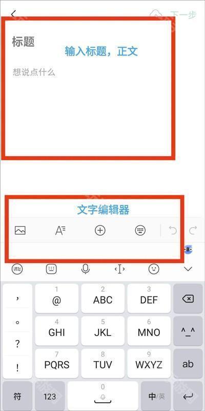3、按照页面的提示输入“标题”和“文章正文”,点击下一步。