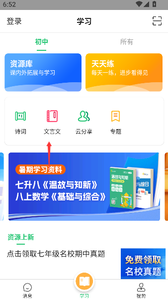 1、轻点首页那个写着“文言文”的卷轴图标,仿佛推开一扇通往古人智慧宝库的时光之门。