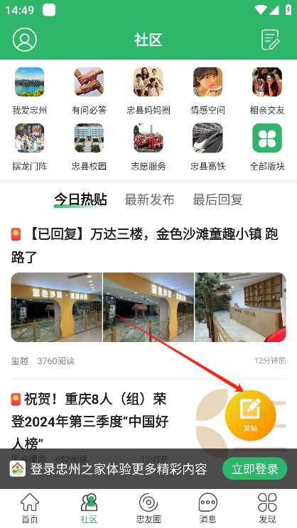 忠州之家app,是一款由重庆嘉壹科技有限公司精心打造的交流社区软件,旨在为忠县的朋友们提供一个丰富多彩的线上平台。在这里,你可以轻松获取招聘信息、参与本地热点讨论,还可以享受便捷的生活服务,包括美食、婚嫁、招聘等全方位的服务体验。作为忠县网友们的精神家园,忠州之家app不仅是一个社交空间,更是贴心的生活助手。无论是衣食住行还是娱乐购物,忠州之家app都是你不可多得的好帮手。