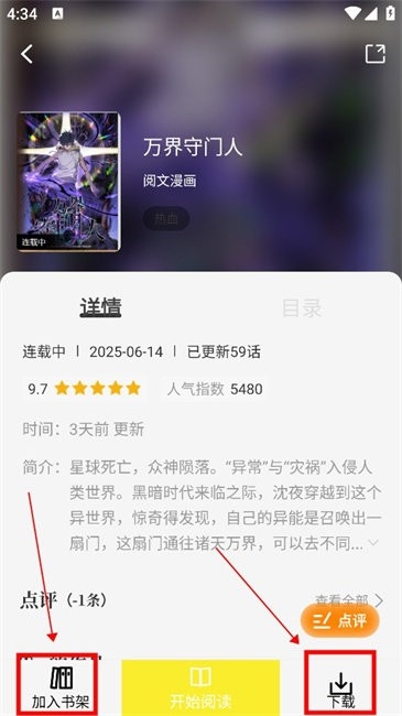 4、还可以对作品添加到书架或者下载阅读。