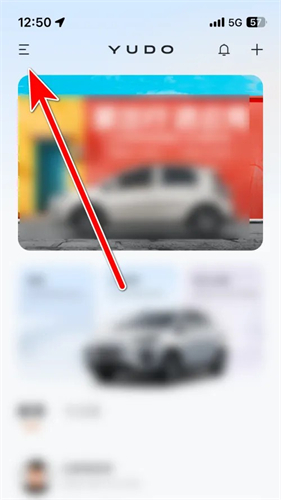 1、打开云度汽车app首页,点击屏幕上的【三横线】按钮。