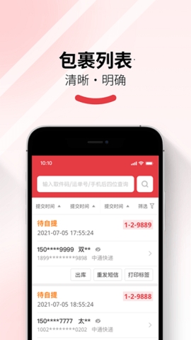 包裹管理(状态筛选 / 搜索 / 批量操作 / 打印标签)