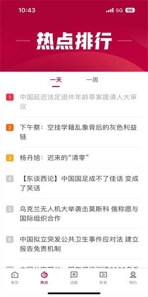 3、在热点界面可以了解最新的热点排行,有最近一天的、一周之类的。