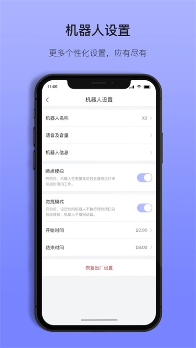 4、支持根据用户预设的时间自动启动扫地机器人进行清扫,定点清洁帮助用户保持整洁环境。