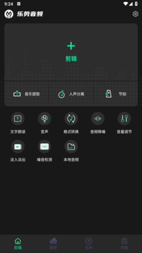 1、打开乐剪音频app,进入剪辑专区,可以直接对视频进行剪辑,还有其他的小工具可以使用。