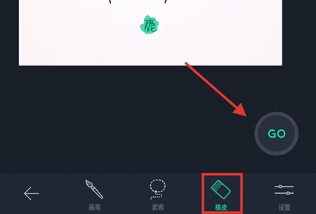 3、画笔涂抹之后,在选择第三个橡皮功能,对水印周边画笔的范围进行修饰,修饰完毕之后点击界面中出现的”GO”按钮