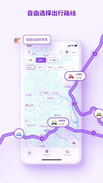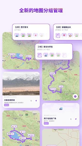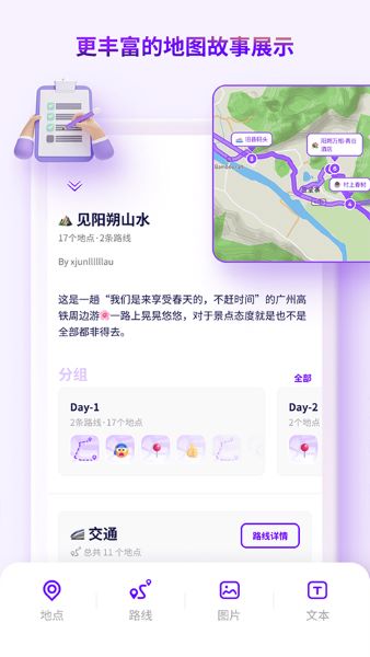 3、一张地图支持添加多个分组,用户能够通过自定义的分组,归类管理所有地点和路线,方便进行查找或分享;