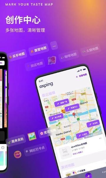 Exping是一款好用的地图标注软件,非常适合旅行时使用。您可以在地图上添加各种主题,例如好吃的地方、好玩的地方和景点,并与朋友打卡。它还可以导出地图为海报,变成一个可视的回忆。此外,该软件还提供了一个社区功能,在那里您可以查看朋友发布的地图作品,以获得灵感,并分享个人作品到社区,让更多人看到您的创造力,从而产生互动和共鸣。